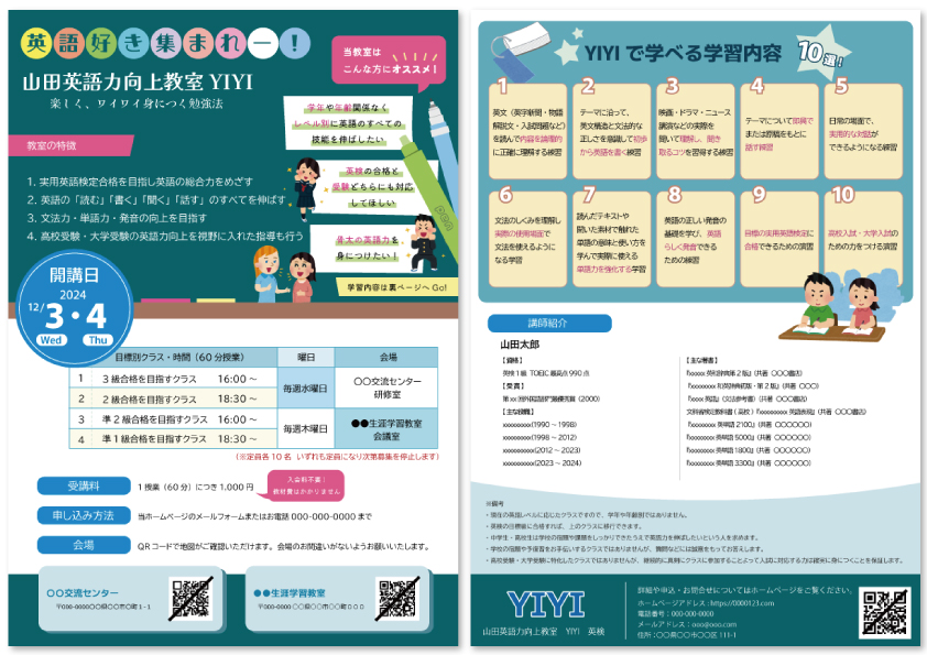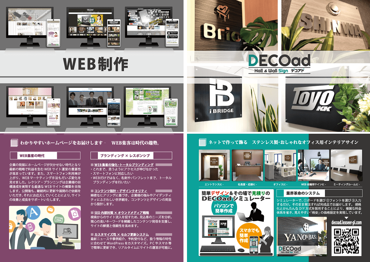 デザイン制作一例 2023.08.032025.11.18 パンフレット・リーフレット 》折りパンフレット》中綴じパンフレット》巻き三つ折りリーフレット等 レクシア・プランニング株式会社 パンフレット デザイン料金・プラン 折りパンフレット 仕様価格 A4仕上がり4P 両面4Cカラー¥80,000~ ※ウェブ制作とセットで割引あり 中綴じパンフレット 仕様価格 A4仕上がり8P 全ページ4Cカラー¥128,000~ ※ウェブ制作とセットで割引あり 巻き三つ折りリーフレット等 仕様価格 A4の3分の1仕上がり(展開時A4サイズ) 両面4Cカラー¥42,000~ ※ウェブ制作とセットで割引あり チラシ・フライヤー 》A4、B4、A3フライヤー》折り込みチラシ 等 デザイン料金・プラン チラシ・フライヤー 仕様価格 A4片面4Cカラー¥20,000~ A4両面4Cカラー¥38,000~ B4両面4Cカラー¥54,000~ A3両面4Cカラー ¥69,000~ ※2種類以上制作の場合割引あり 名刺・ショップカード 》名刺・ショップカード》チケット等 デザイン料金・プラン 名刺・ショップカード 仕様価格 片面4Cカラー¥2,800~ 両面4Cカラー ¥3,800~ ※パンフレットまたはウェブ制作とセットでご注文の場合は無料 ロゴマークデザイン デザイン料金・プラン ロゴデザイン制作 仕様価格 候補3案提示、内1点採用¥18,000~ ※ウェブ制作とセットで無料(pdfデータで納品) イラスト制作 》HPの素材イラスト》チラシ等ワンポイントイラスト ラフ制作 イラスト制作工程 ラフを制作します。「ピアノを弾くドレスを着た女性」という受注でした。 今回は「線画有り」のイラストなので、ラフに沿って線画を作成します。 着彩しました。 ハイライトや影、細かい部分を書き込んで完成です。 デザイン料金・プラン イラスト制作 仕様価格 挿絵(人物アイテム風景等)1点 ¥5,000~ 挿絵(人物アイテム風景等)3点 ¥10,000~ 挿絵(人物アイテム風景等)5点 ¥20,000~ ※pdfデータで納品